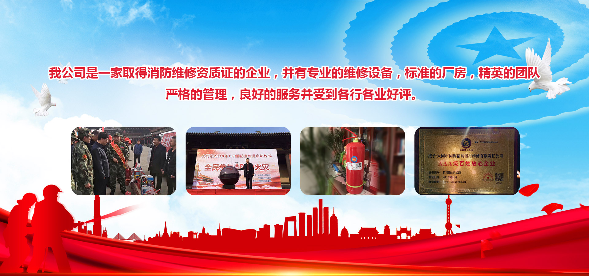 大同市同渾消防器材維修有限責任公司,位于大同市同泉路389號,始建于2000年,是公安部消防局定點銷售和維修的企業,歷經多年的創建、發展和拼搏,現有多家消防器材廠商供應我公司,并有現代化維修設備,標準的廠房,嚴格的管理,優良的設備,良好的服務并受到各行各業的好評??偨浝韯駠栏窆芾恚瑖栏褚?,精益求精,認真負責,帶領團隊熱烈歡迎各界朋友顧客光臨。